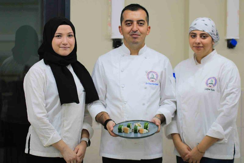 Gülfem Kuru ve Şulenur Böyükaslan adındaki öğrenciler, sarmaların yan ürünü olan lahanaları kullanarak, Doktor öğretim üyesi İhsan Kazkondu’nun önerisiyle suşi yapmaya karar verdiler. Türk mutfak kültürünün bir parçası olan baldo pirinç, mancar, havuç ve salatalığın kullanıldığı bu özel suşi, hem vegan hem de sağlık dostu bir seçenek olarak dikkat çekti.
