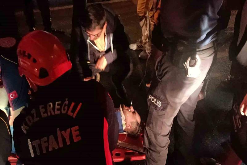 Zonguldak’ın Ereğli ilçesinde kamyonun altına giren motosiklet sürücüsü için ekipler adeta zamanla yarıştı.