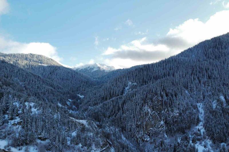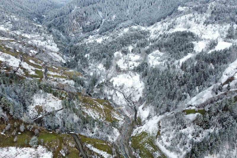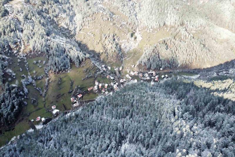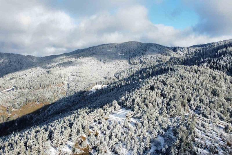 Kastamonu’nun yüksek kesimlerinde kar yağışı ile beyaza bürünen dağlardaki manzaralar mest etti. Ilgaz Dağı’nın eteğinde bulunan İhsangazi ilçesinde yüksek kesimlerinde, kar yağışının ardından kartpostallık görüntüler ortaya çıktı. Görenleri büyüleyen Ilgaz Dağı’nın etekleri dron ile havadan görüntülendi.