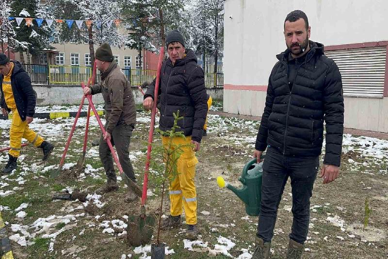 Kastamonu’nun İhsangazi ilçesinde 21 Mart Dünya Ormancılık Günü etkinlikleri çerçevesinde kar yağışı altında fidan dikildi.