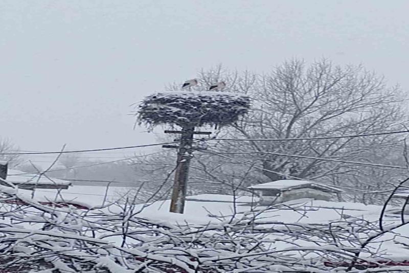 Baharın gelmesi ile birlikte Kastamonu’nun Seydiler ilçesine göç eden leylekler kara yakalandı. İlçede bulunan yuvalarına geri dönen 2 leyleğin kar sebebiyle aç kalmış olabileceğini değerlendiren Seydiler Belediyesi ekipleri harekete geçti. Leyleklerin yuvalarından uçamadığını fark eden vatandaşların durumu bildirmesi üzerine, itfaiye aracının merdiveni yardımı ile ulaşılan yuvaya yem bırakıldı. Ekipler yuvayı kapatan karları da elleri ile temizledi.