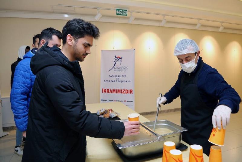 Karabük Üniversitesi, sınav haftasına giren öğrencilerin motivasyonunu artırmaya destek olmak için öğrencilere sıcak çorba ikramında bulundu.