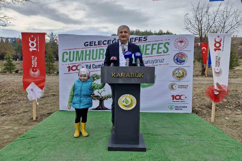 Cumhurbaşkanı Recep Tayyip Erdoğan’ın himayelerinde Karabük’te 11 Kasım Milli Ağaçlandırma Günü etkinlikleri bünyesinde “Geleceğe Nefes Cumhuriyete Nefes” sloganıyla fidan dikim programı yapıldı. Bostanbükü köyü Kılavuzlar Mahallesinde düzenlenen programda mahlep, yabani kiraz ve sedir türlerinde 2 bin 23 fidan toprakla buluşturuldu. Kent genelinde eş zamanlı olarak 41 noktada 52 bin 46 fidan dikimi yapıldı.