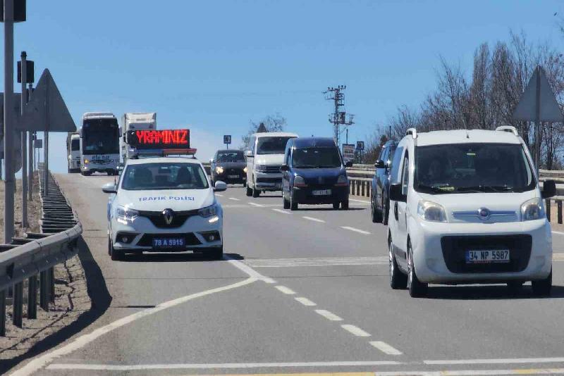 Her bayramda olduğu gibi bu bayramda da yoğun bir şekilde trafik akışının sağlandığını ifade eden Bozkurt, “Karabük il Emniyet Müdürlüğü olarak ekip ve personel sayımızı artırarak tedbirlerimizi almış bulunmaktayız. 5 farklı noktada denetimlerimiz devam ediyor. Bölge Trafik Denetleme Müdürlüğümüzün önünde bulunan yaşam tüneline kontrollü bir şekilde alınan sürücülere ’yaşam için kısa bir mola’ diyerek vatandaşlarımıza emniyet kemeri ve hız kurallarının önemini anlatıyoruz ve bu kuralların uyulmaması dahilinde yaşanabilecek olumsuzlukları anlatmaya çalışıyoruz. Yine ekiplerimiz güzergahlarda otobüs denetimlerini gerçekleştiriyorlar. Otobüs denetimlerinde yolcuları tek tek emniyet kemeri konusunda uyarıyoruz. Radar ekiplerimiz aynı şekilde 7 gün 24 saat esasına göre çalışmalarına devam ediyor” diye konuştu.