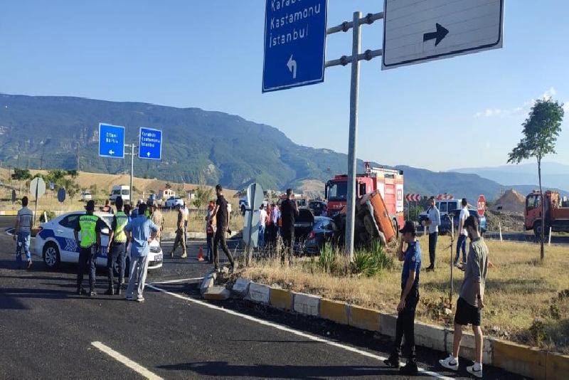 Edinilen bilgiye göre kaza, saat 17.00 sıralarında Babasultan mevkisinde yaşandı. F.F.K. idaresindeki 43 AAR 657 plakalı otomobili ile Kastamonu istikametinden gelip kavşaktan dönüş yapmak istediği sırada Karabük istikametine seyir halinde olan N.Ç. idaresindeki 37 PU 395 plakalı Karayolları Müdürlüğü’ne ait resmi plakalı araçla çarpıştı.