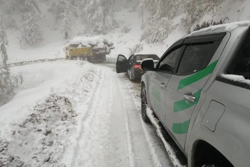 Bolu’da pazar günü etkili olan yoğun kar yağışı ve tipi nedeniyle kapanan yollarda Bolu Orman Bölge Müdürlüğü ekipleri, mahsur kalan onlarca vatandaşın kurtarıldığını açıkladı. Balıklı yaylası ile Taşkesti arasındaki yol güzergahında mahsur kalan vatandaşların yardımına Taşkesti Orman İşletme Müdürlüğünde görevli ormancılar yetişti. Gelen ihbarı değerlendiren Taşkesti Orman İşletme Müdürlüğü personeli işletme müdürlüğüne ait bir adet greyder ve bir adet hizmet vasıtasıyla olay yerine ulaşmak için harekete geçti. Ekipler, yaklaşık 4 saat süren çalışma sonunda yolda mahsur kalan otomobil ve içindeki 3 kişi ile kamyon ve şoförünü mahsur kaldığı yerden kurtardı. Taşkesti Orman İşletme Müdürlüğüne bağlı ekipler karda mahsur kalan vatandaşlara Taşkesti beldesine kadar eşlik ederek sağ salim ulaşmalarını sağladı.
