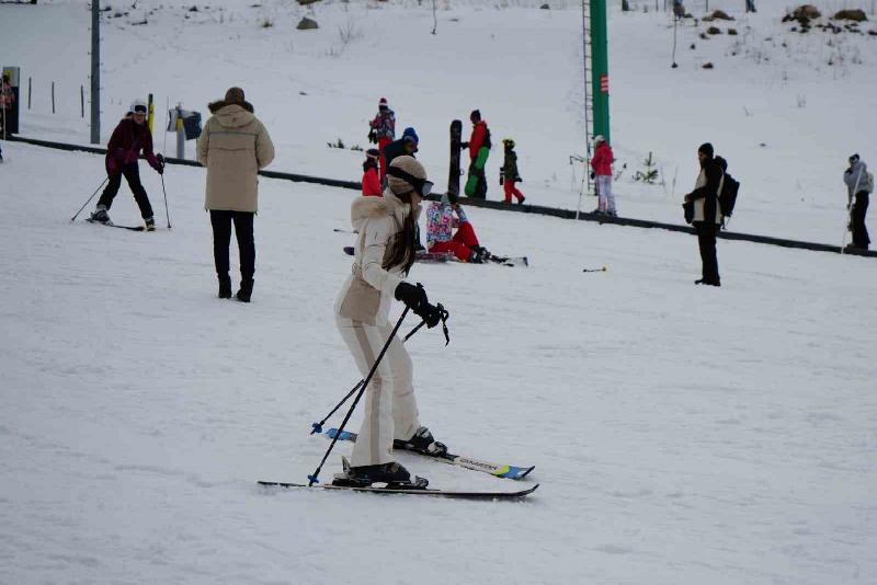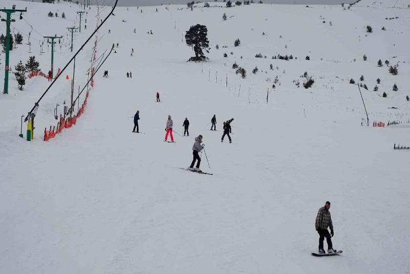 Bolu kent merkezine 45 kilometre uzaklıkta bulunan Kartalkaya Kayak Merkezi’nde yılın son gününde tatilciler kayak pistlerini doldurdu. Kış mevsiminde yerli ve yabancı turistlerin ilgi odağı olan kayak merkezinde bulunan 2 bin yatak kapasiteli toplam 5 otel yüzde yüz doluluk oranına ulaştı. Yapay karlama ile birlikte kar kalınlığının 80 santimetreyi bulduğu Kartalkaya’ya gelen tatilciler tamamı açık olan pistlerde kayak yapmanın keyfini çıkarıyor. Gece ise çeşitli programların olduğu Kartalkaya’da tatilciler gece saatlerinde de kayak yapma fırsatı bulabilecek.
