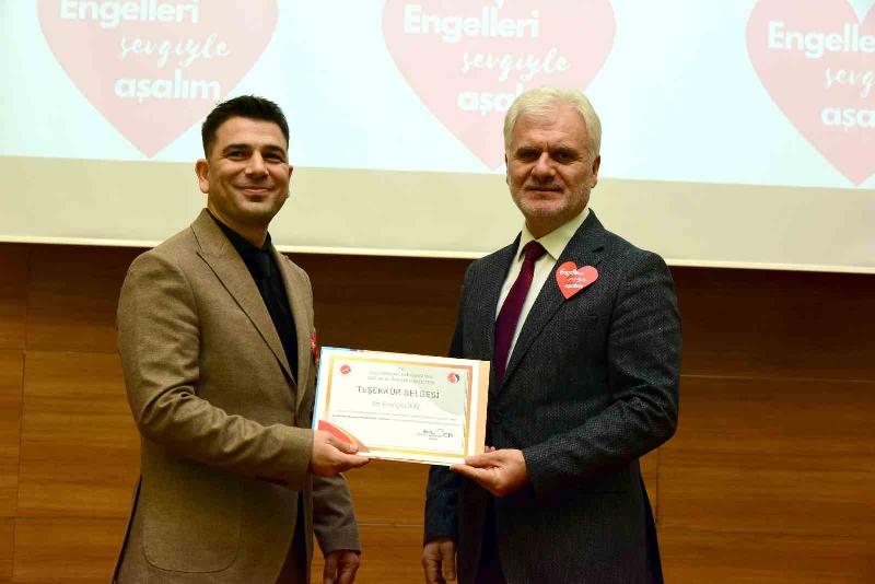 Özel gereksinimli bireylerin ihtiyaçlarını karşılamanın evrensel bir hak olduğuna dikkat çeken Sağlık Bilimleri Fakültesi Dekanı Prof. Dr. Abdulkadir Tuna, “Zorluklar yaşayan, özel bireylere yaklaşım ve davranışların belirlemesinde toplumsal farkındalık ve hassasiyetin oluşturulması şüphesiz bir önem arz etmektedir. Bu özel bireylerin temel ihtiyaçlarının karşılanması konusunda tıbbi teçhizatın sağlanması, teknolojilerden faydalanması lazım. Aynı zamanda bu bireyler ile ailelerine de eğitim rehabilitasyon ve psikolojik destek verilmesi, hayatın basamaklarında kendilerine yetecek kadar öz güvenle yürüme imkanı sağlayacaktır” dedi.