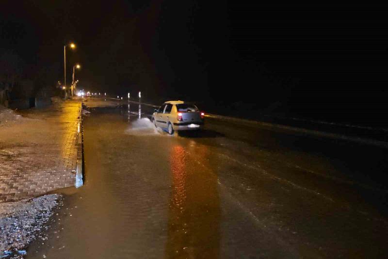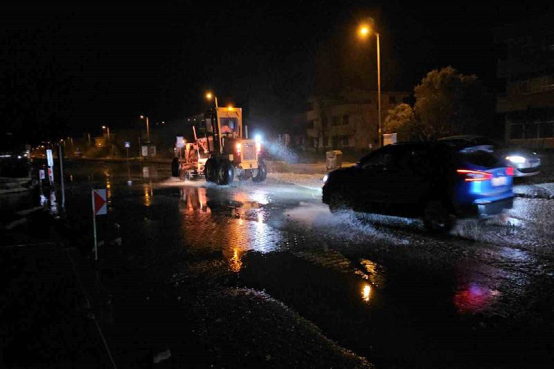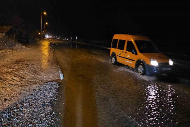 Ekipler, yolda biriken suyun tahliye edilmesi için çalışma başlattı.