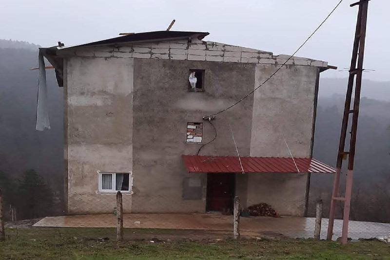 Kastamonu’nun Cide ilçesinde etkili olan fırtına sebebiyle iki binanın çatısı uçtu.