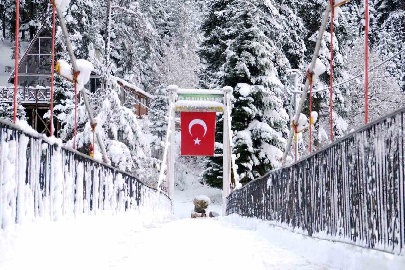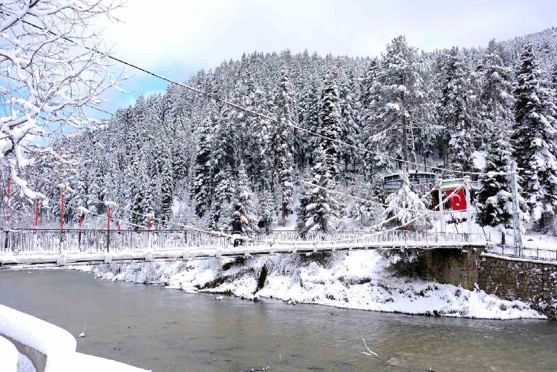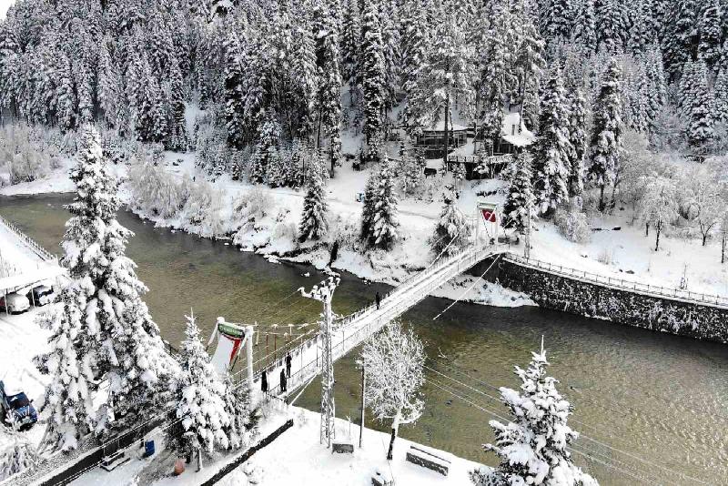 Kastamonu’nun Azdavay ilçesinde etkili olan kar yağışı sonrasında kartpostallık görüntüler oluştu.