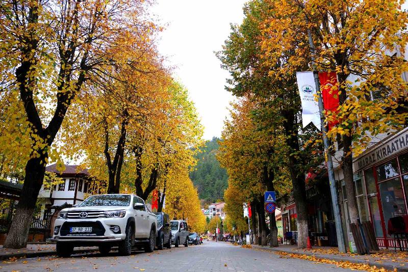 Yemyeşil çam ağaçları arasında sararan yapraklarını yavaşça yere bırakan ağaçlar, bölgeyi gezmeye gelenleri büyülüyor.