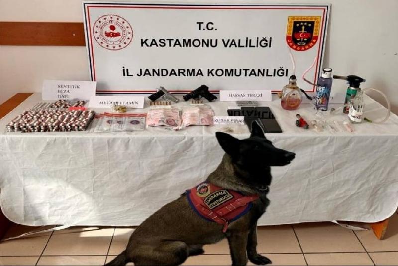 Edinilen bilgiye göre, Kastamonu İl Jandarma Komutanlığı ekiplerince uyuşturucu madde imal ve ticaretinin önlenmesine yönelik yürütülen çalışmalar neticesinde Merkez ilçesinde 6 şahsa ait 4 ayrı adreste arama yapıldı. Yapılan aramada 760 adet sentetik ecza hapı, 52 gram metamfetamin, 2 adet ruhsatsız tabanca, tabanca mermisi, esrar, 9 adet cep telefonu, hassas terazi, suçtan elde edildiği değerlendirilen 36 bin 820 TL para ele geçirildi.