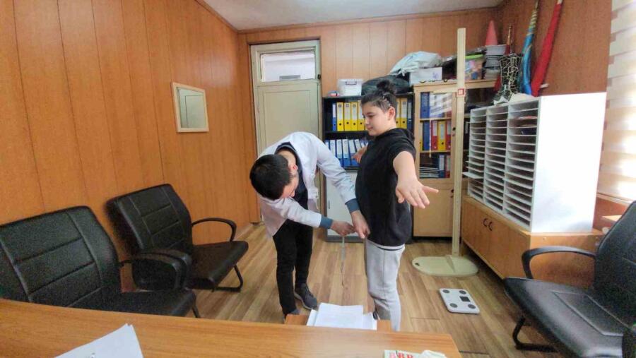 Yaptıkları taramalar sonucunda çocukları gruplara ayırdıklarını söyleyen Fizyoterapist Aysun Akın da, “Tarama çerçevesinde çocukların skolyoz ve fiziksel gelişim taramalarını yapıyoruz. Tek tek il genelinde tüm ilçelere gittik, merkezi de tarıyoruz. Bu tarama ortaokul çocukların da gerçekleşiyor. Fiziksel gelişim çerçevesinde çocukların boyu kilosu ölçülüyor. Mezurayla bel kalça çevresini ölçüyoruz. Ardından skolyometre ile sırtlarını değerlendiriyoruz, ona göre skolyoz riski olup olmadığına bakılıyor. Gerekli doktor yönlendirmeleri yapılıyor. Fiziksel gelişim taraması çerçevesinde çocuklar A, B,C ve D gruplarına ayırıyoruz. Buna göre A grubu gelişim olarak zayıf, D grubu obez bunları eğitim araştırma hastanesindeki pediatri doktoruna yönlendiriyoruz. C grubu hafif kilolu olan grubunda çocukları kendi bulundukları aile hekim uzmanı değerlendiriyor. B grubu da normal. Skolyoz için de yine A ve B grubu olarak ayrılıyor. A grubu olanlar normal, B grubu da skolyoz riski olan çocuklar olarak değerlendiriyor. Eğitim Araştırma Hastanesinde Cuma günleri de randevusuz bir şekilde ortopedi doktoruna yönlendiriliyor. Bu çerçevede doktor değerlendirmesinden geçiyorlar. Fiziksel gelişim açısından da aynı şey geçerli. Böylece hem çocuklar fiziksel gelişim hem de skolyoz açıdan iki açıdan olarak değerlendirmiş oluyoruz” diye konuştu.