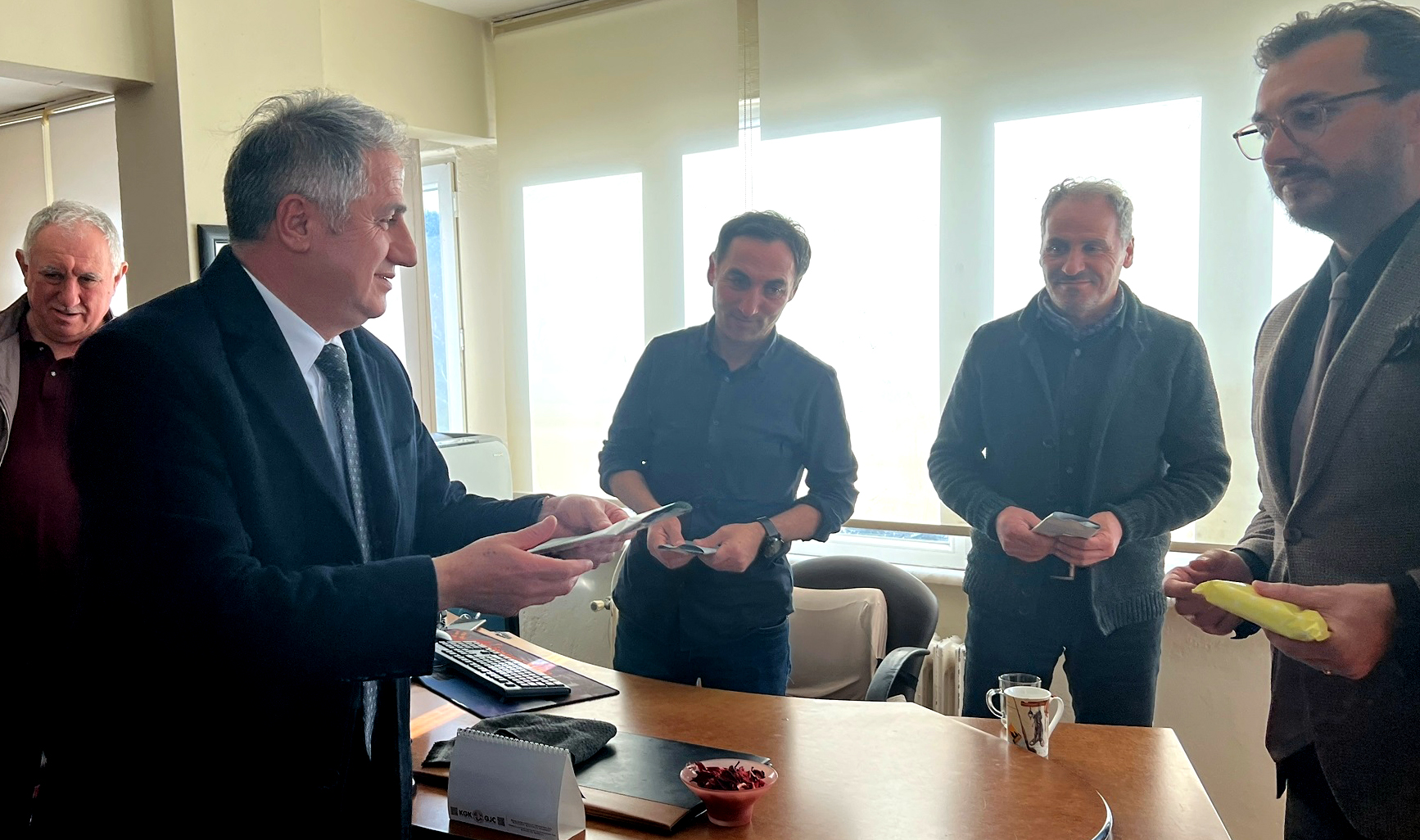 Cemiyet Başkanı Sina Çıladır yönetim kurulu üyeleri ve gazetecilerin karşıladığı AK Parti heyeti adına konuşan Başkan Saffet Bozkurt, 10 Ocak Çalışan Gazeteciler gününü kutlayarak; gazetecilere hediye takdiminde bulundu.