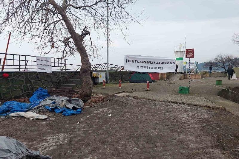 Öte yandan kayıp denizcilerden gemide yağcı olarak görev yapan Ömer Hebip’in ailesi Bozhane Limanı’na çadır kurdu. Pankart asan aile “Şehitlerimizi almadan gitmeyeceğiz” diyerek ateş yakıp bekleyişini sürdürüyor. Ömer Hebip ile aynı adı taşıyan babası Ömer Hebip, “Burada bekliyoruz. Çıkana kadar bekleyeceğiz. Buradan gitmeyeceğiz. Çadır kurduk. Çadırda yatıp kalkıyoruz. Oğlumun bir an önce çıkmasını istiyorum. Çalışmalar yapılıyor. Bugün çalışmaya başladılar. Biz de çadır kurduk çadırda yaşıyoruz. Oğlumun ölüsü çıkana kadar buradayım. Hiç bir yere gitmeyeceğim. Buradan da çalışmaları takip ediyorum” diye konuştu.