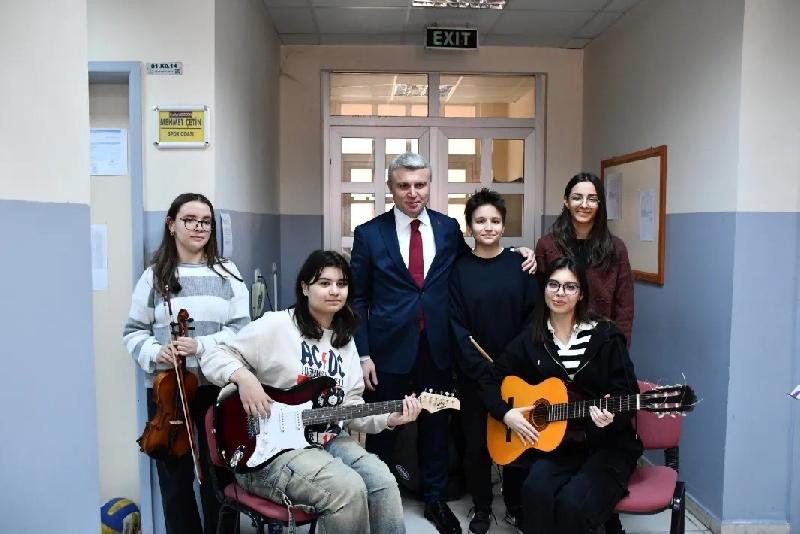 Öğrenciler tarafından çiçeklerle karşılanan Kaymakam Yazıcı ve Odabaşoğlu, sınıfları gezdi. Şube Müdürü Yakup Tümen’in de katıldığı programda, Kaymakam Yazıcı, öğrencilere sorular sorup sohbet etti. Müzik alanında çalışmalar yapan öğrencilerin çalışmalarını dinleyen Yazıcı, Okul Müdürü Ziya Çalışkan ve öğretmenlerle de görüşerek özverili çalışmalarından dolayı teşekkür etti.