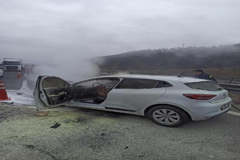 Kaza, Anadolu Otoyolu’nun Bolu geçişinde Köroğlu mevkiinde meydana geldi. Edinilen bilgiye göre, İstanbul istikametinde seyreden Cem B. idaresindeki 06 DDY 768 plakalı otomobil, sürücüsünün direksiyon hakimiyetini kaybetmesiyle kontrolden çıktı. Kontrolden çıkan otomobil, bariyerlere çarptı. Bariyerlere çarpan otomobilin motor kısmı kaza sonrasında alev aldı. Aracın yandığını fark eden sürücü otomobilden inerek durumu 112 Acil Çağrı Merkezi’ne bildirdi. Olay yerine Yeniçağa Belediyesi İtfaiye Amirliği ekipleri sevk edildi. İtfaiye ekipleri tarafından alev alev yanan otomobil söndürüldü. Hem kaza yapan hem de alev alev yanan otomobil hurdaya döndü.