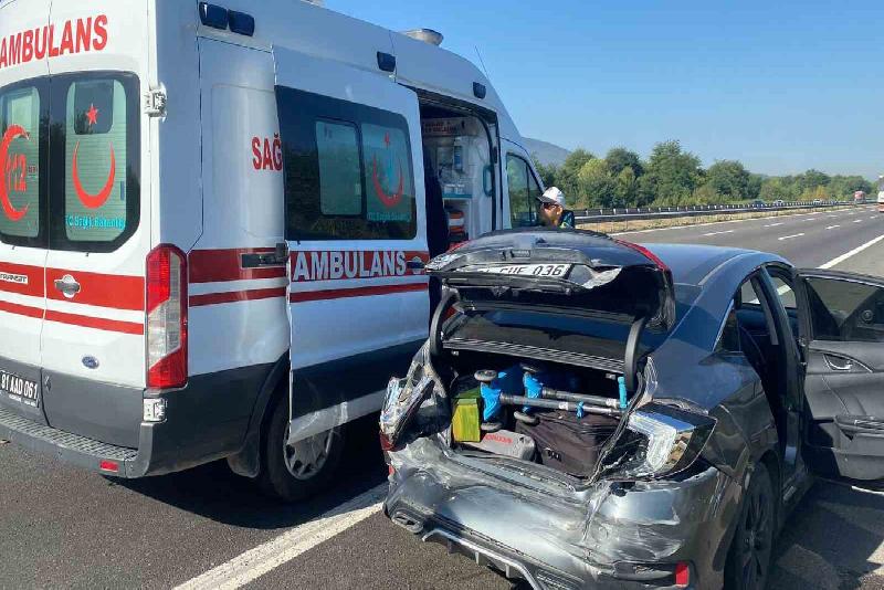 Anadolu Otoyolu Kaynaşlı mevkisinde P.G.B idaresindeki 06 DAJ 607 plakalı otomobil ile C.Ç.Ç. idaresindeki 34 CUF 036 plakalı Honda marka otomobil çarpıştı. Olay yerine emniyet ve sağlık ekipleri sevk edildi. Kazada yaralanan olmazken araç içerisindeki iki çocuk korktu. Çocukları olay yerine gelen Bölge trafik Tescil ve Denetleme Şube Müdürlüğü ekipleri sakinleştirdi. Ekipler, çocuklara çikolata ve su vererek korkularını atlatmalarını sağlamaya çalıştı.