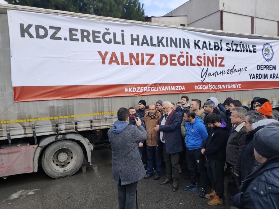 Kdz. Ereğli Belediyesi, deprem bölgesine yardım malzemeleriyle dolu 8’inci tırı da yola çıkardı. Belediye Başkanı Halil Posbıyık, bölgeye yardım tırlarını yarında göndermeye devam edeceklerini söyledi.