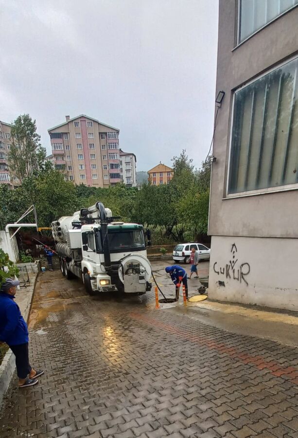 Belediye Temizlik İşleri Müdürlüğü ile Su ve Kanalizasyon İşleri Müdürlüğü ekipleri gece yarısından itibaren tıkanan mazgalları anlık olarak temizledi, dereler ise kontrol altında tutuluyor.