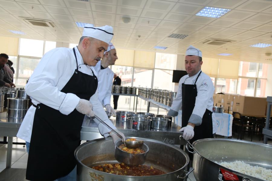 Çok özen gösterdiğimiz bir konu ve özellikle kimseyi rencide etmeden bu işlevi yapıyoruz. Ekiplerimiz hazırlıklarını yapıyor, sefer taslarıyla birlikte evlerine götürüyor. Kapı ağzından ihtiyaç sahiplerine veriyor. Kesinlikle kimseyi rahatsız etmeden, rencide etmeden bu işlemi yapmaya çalışıyoruz. Aşçılarımız lezzetli yemekler yapıyor zaten. Her gün üç kap yemek burada hazırlanacak. Sefer taslarını hazırladık. Kapı ağzından aile sayısına göre yemekleri verilecek. Ertesi gün yemek, götürdüklerinde boşları alıp yemeklerini bırakacaklar. Her gün menüler değişik. Bugün çorba, tas kebabı ve pilav hazırladık. İhtiyaç sahibi vatandaşlarımızı tespitlerini yaptık.