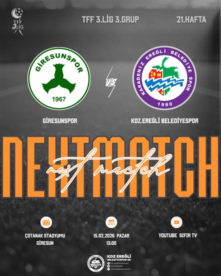 Kdz. Ereğli Belediyespor, 15 Şubat Pazar günü deplasmanda oynayacağı Giresunspor maçı hazırlıklarını tamamladı. Şehirde galibiyet rüzgarları eserken, teknik heyet ve futbolcular zorlu mücadeleden zaferle ayrılmanın planlarını yapıyor.
