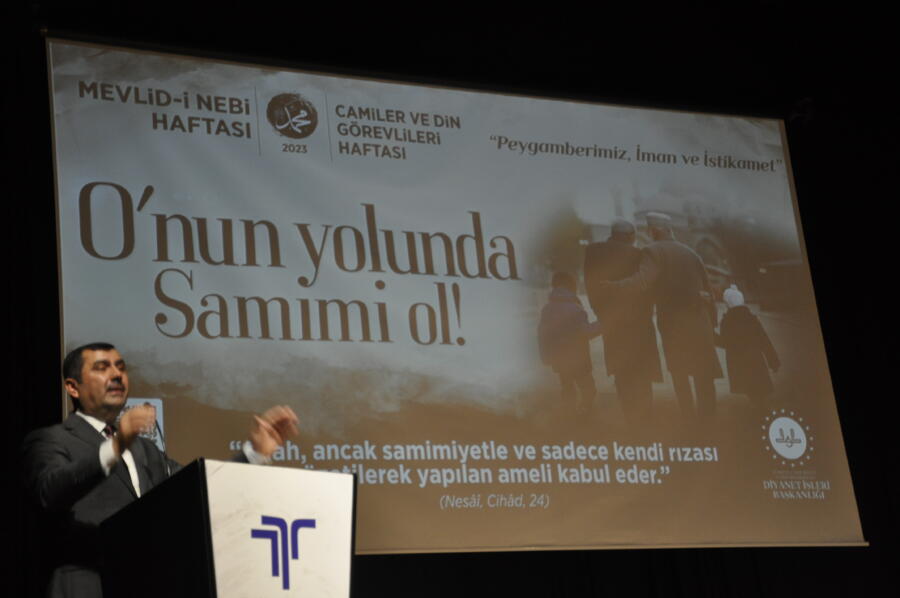 DİB Din İşleri Yüksek Kurulu Başkanlık Vaizi Kazim Türkmen de, sinevizyon gösterimi sonrası verdiği konferansta, tüm insanlığa gönderilen Allah’ın son elçisi hakkında bilgiler verdi.