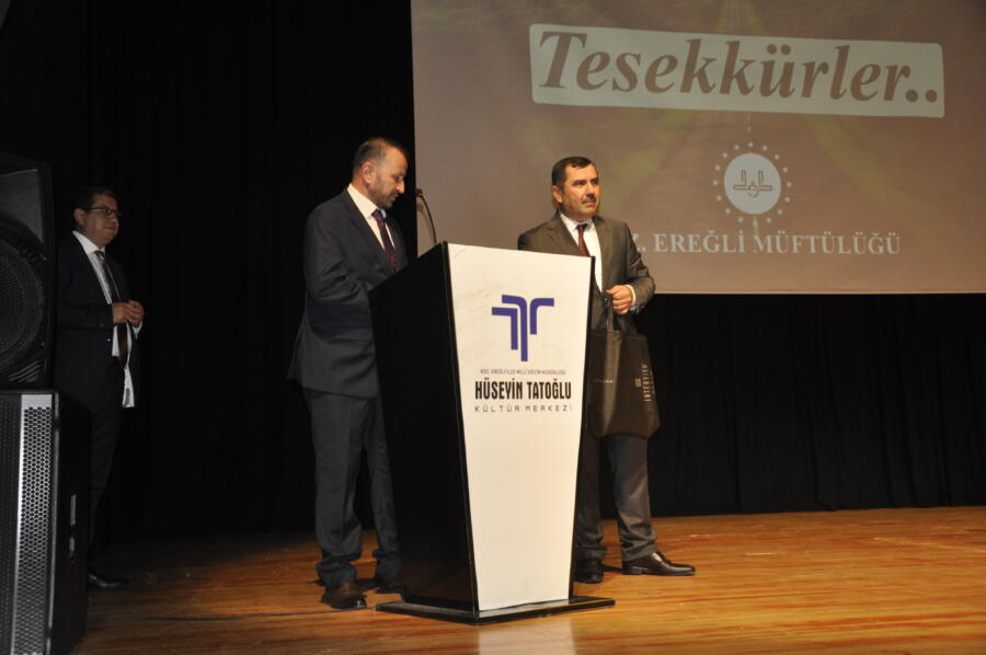 İlçe Müftülüğünce Hüseyin Tatoğlu Kültür Merkezi’nde düzenlenen etkinlikte; konferans yapacağı duyurusu birkaç gün önce yapılan ancak dün (2 Ekim) babası rahatsızlandığı için Ereğli’ye gelemeyen Diyanet İşleri Başkanlığı Başkanlık Müşaviri Suat Okuyan’ın yerine yine DİB Din İşleri Yüksek Kurulu Başkanlık Vaizi Kazim Türkmen “Peygamberlerimiz, iman ve istikamet” isimle konferans verdi.