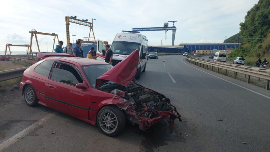 Kaza, akşam saatlerinde Alaplı karayolu Tersaneler mevkisinde meydana geldi. İddiaya göre, Alaplı istikametine seyir halinde olan U.B. idaresindeki 67 AAU 163 plakalı otomobil sürücüsü virajda direksiyon hakimiyetini kaybetmesi sonucu refüje çarparak savruldu.