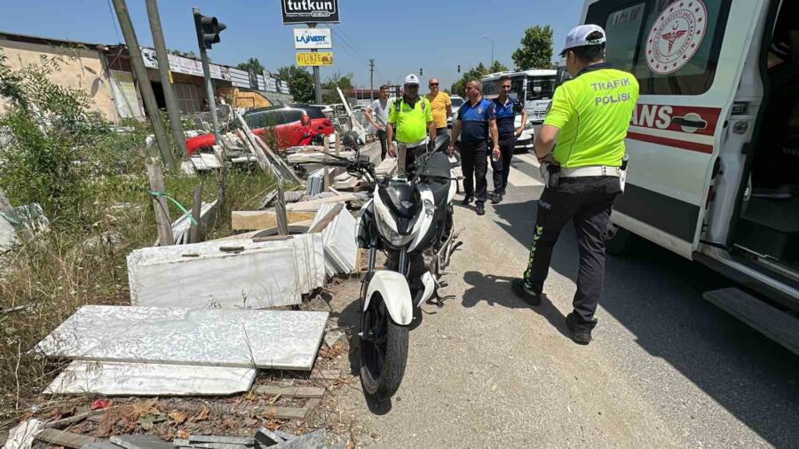 Düzce’de sürücüsünün kontrolünden çıkan motosiklet yol kenarındaki mermerlere çarparak durabildi. Kazada yaralanan 2 kişi hastaneye kaldırıldı.