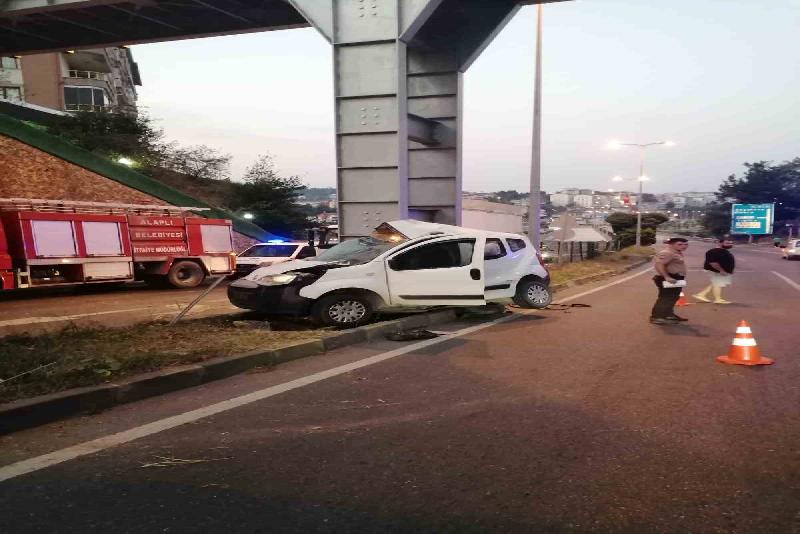 Zonguldak’ın Alaplı ilçesinde kontrolden çıkan otomobilin üst geçide çarpması sonucu 1 kişi yaralandı