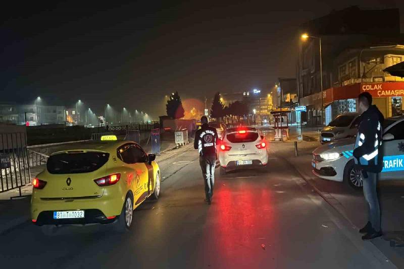 Düzce’de polis ekiplerinin yaptığı şok denetimde kontrole giren 31 aracın 25’ine çeşitli maddelerden 22 bin 191 lira ceza yazıldı.