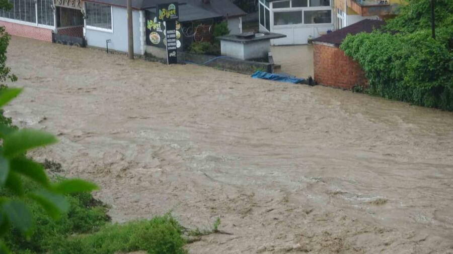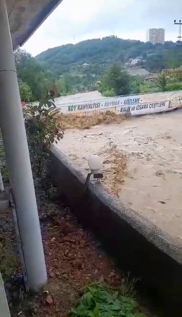 Zonguldak’ın Kozlu ilçesine bağlı Ilıksu mevkisinde yağışlarla birlikte derenin debisi yükseldi. Bir yaya köprüsü ise derenin yükselen debisine dayanamayarak yıkıldı. O anlar amatör kameraya yansıdı.