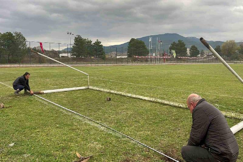 Kastamonu’da 1. Amatör Küme’de mücadele eden İhsangazispor’un, Taşköprüspor’u ağırladığı maçta ölçüleri farklı olduğu için karşılaşmanın iptal olmasına sebep olan kale direkleri değiştirildi.