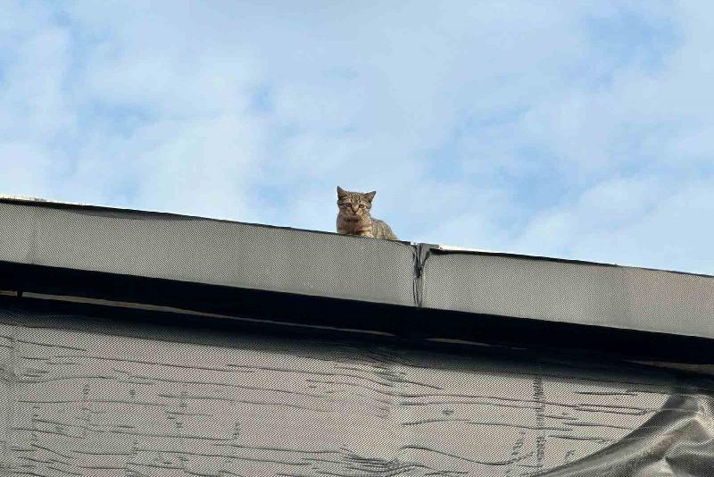 Düzce Belediyesi İtfaiye ekipleri bir iş yerinin çatısında mahsur kalan 3 kediyi kurtardı.