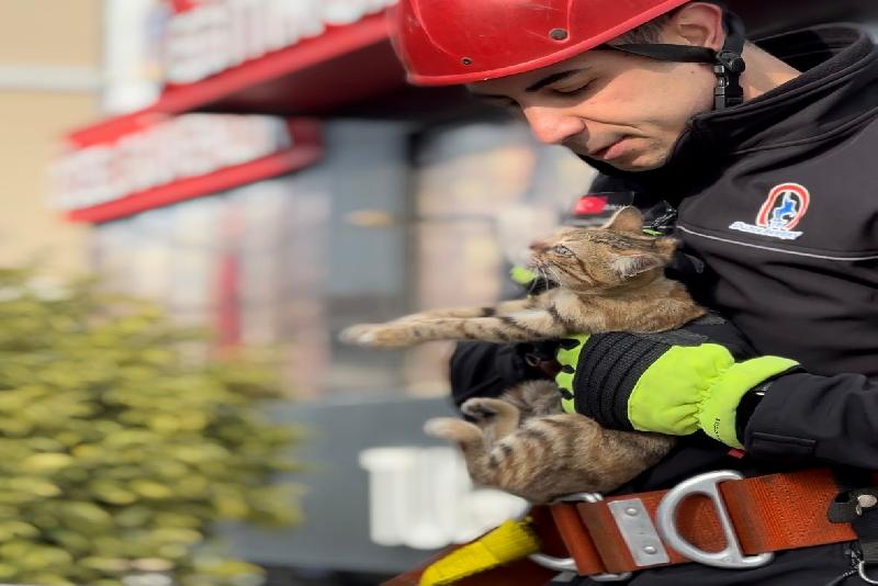 İtfaiyenin sepetli aracıyla binanın çatı katına ulaşan itfaiye erleri kısa sürede, çatı katından inemeyen kedilere ulaştı. İtfaiye ekipleri tarafından şefkat ile yaklaşılan kediler kısa süre içerisinde çevredekilerin meraklı bakışları altında kurtarıldı. Kurtarma anları ise saniye saniye kayıt altına alındı.