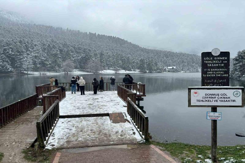Bolu’nun yüksek kesimlerinde dün gece saatlerinde kar yağışı etkili oldu. Bolu’nun doğa harikası Gölcük Tabiat Parkı’nda da kar yağışı etkili oldu. Gölcük Tabiat Parkı hafta sonunu doğayla iç içe geçirmek isteyen ziyaretçilerle doldu. Ziyarete gelen tatilciler, manzaraya karşı bol bol fotoğraf çektirerek golf araçlarıyla göl etrafında turlama fırsatı buldu. Kar yağışı nedeniyle yeşil alanlarda kar kalınlığı 5 santimetreye ulaştı.