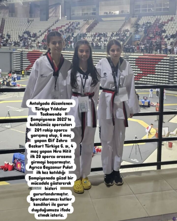 Antalya’da düzenlenen Yıldızlar Türkiye Tekvando Şampiyonasında Karadeniz Ereğli Merih Şuğle Ortaokulu öğrencisi Elif Zehra Bozkurt, büyük bir başarıya imza attı. 201 sporcu arasında 6 maç yaparak Türkiye 6.sı olan Elif Zehra Bozkurt, bu derecesiyle Milli Takım seçmelerine katılmaya hak kazandı.
