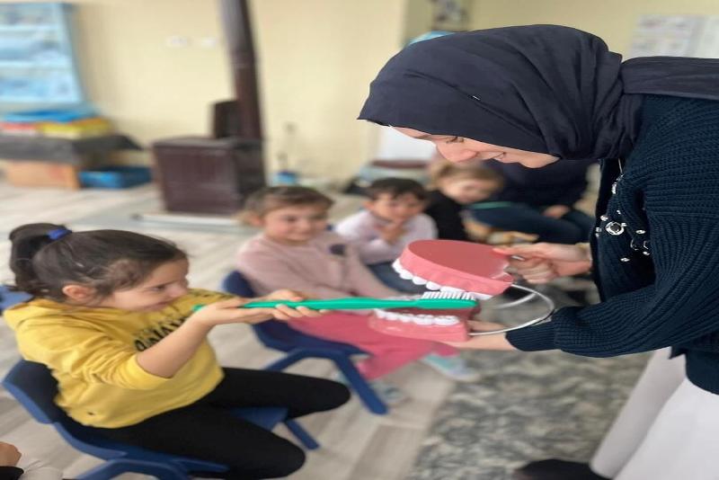 DÜZCE(İHA) –Sağlık Müdürlüğü tarafından anaokulu ve ilkokul öğrencilerine ağız ve diş sağlığı eğitimi verildi. Sağlık Müdürü Dr. Yasin Yılmaz, “Çocuklarımıza ağız ve diş sağlığının önemini aşılıyoruz” dedi.