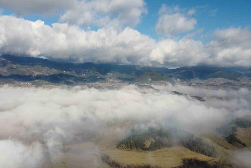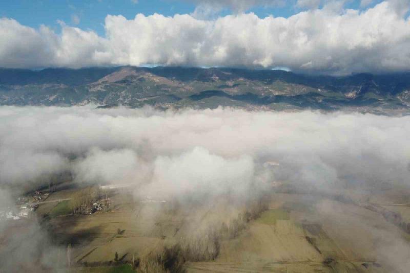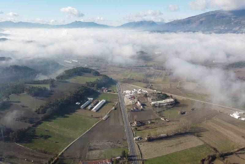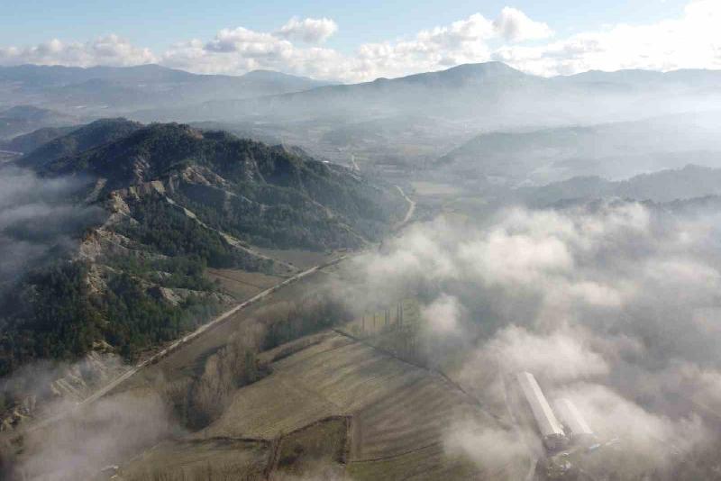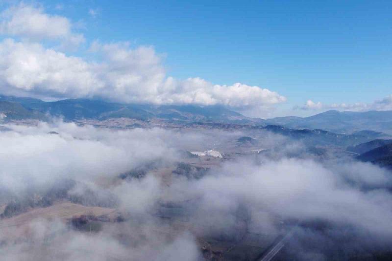 Abant Dağları’nın eteklerinde yer alan Mudurnu Ovası’nda etkili olan sis güzel görüntüler de ortaya çıkardı. Sis tabakasının oluşturduğu manzara, havadan da görüntülendi.