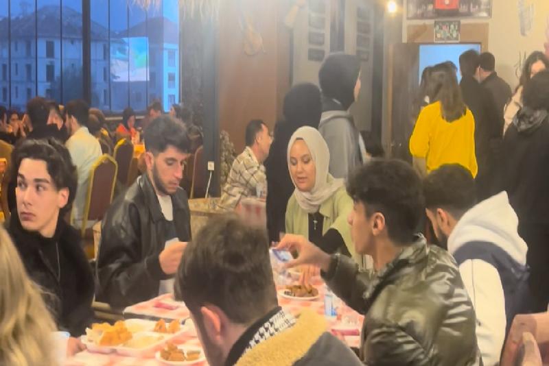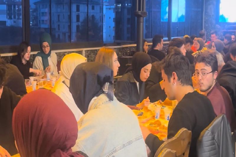 Düzce Üniversitesinin öğrencileri, Hatay’ın Samandağ ilçesinde deprem sebebiyle hasar alan okulu yenileyebilmek için iftar sofrası kurdu.