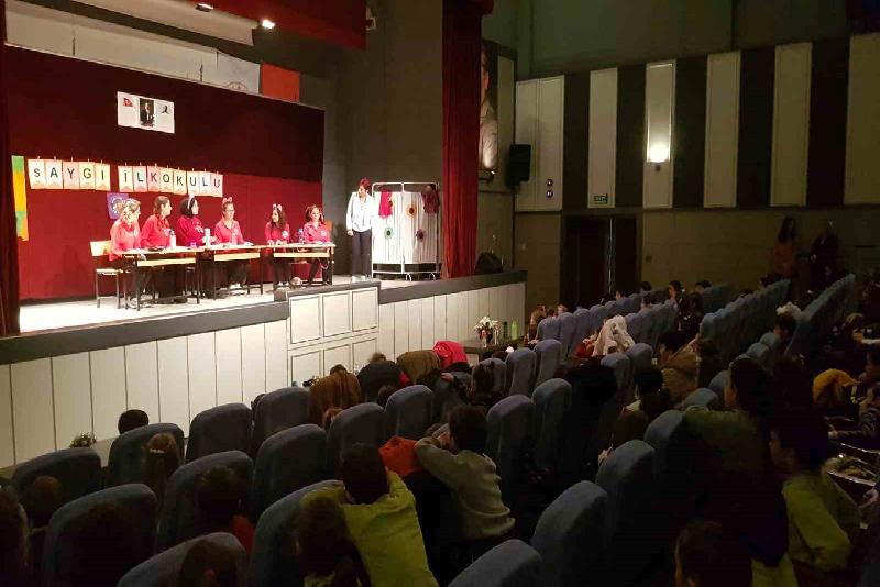 Karabük’te ilkokul öğrencileri, öğretmenlerden oluşan tiyatro ekibinin sergilediği oyunlarla hem eğlendiler hem de görgü kurallarını öğrendiler.
