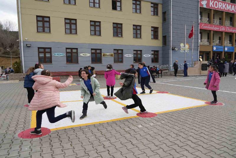 Milli Eğitim Bakanı Yusuf Tekin’in liderliğinde, ekran bağımlılığı ve obezite gibi sorunlarla mücadele etmenin en etkili yollarından biri olarak görülen geleneksel oyunlar, Kastamonu’da okul bahçelerinde çizilen rengarenk çizgilerle öğretmenleri aracılığıyla çocuklara oynatılmaya başlandı.