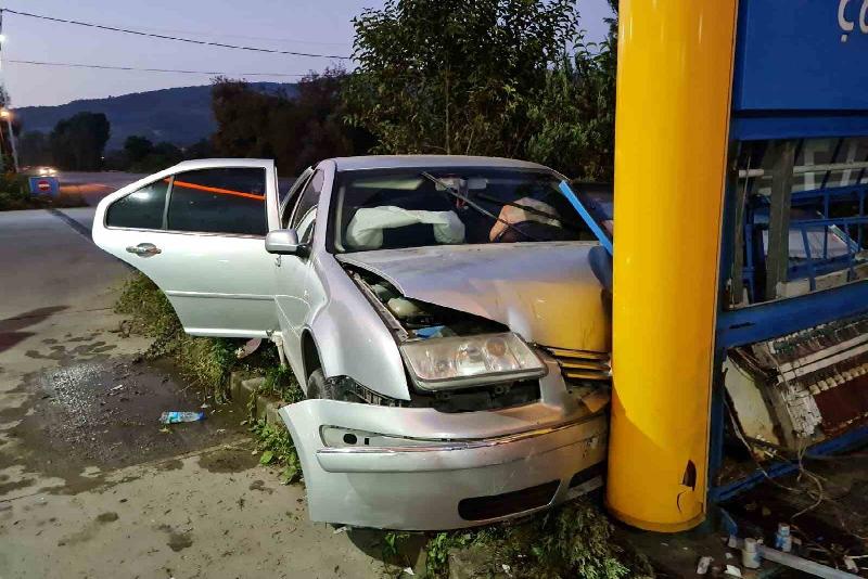 Bartın’ın Çaycuma ilçesi yakınlarında bir otomobil, akaryakıt istasyonunun ışıklı panosuna çarptı.