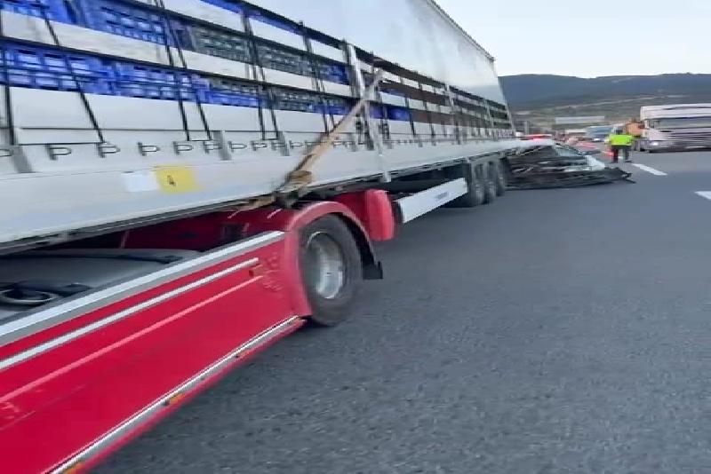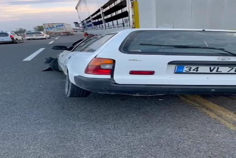 Bolu’nun Gerede ilçesinde meydana gelen kazada bir otomobil, önünde giden tırın dorsesine ok gibi saplandı. Kazada otomobilde bulunan 5 kişi yaralandı.