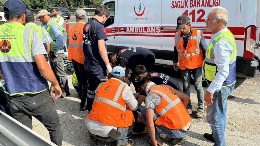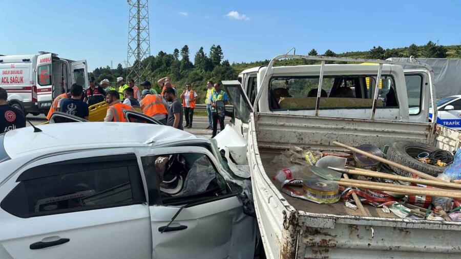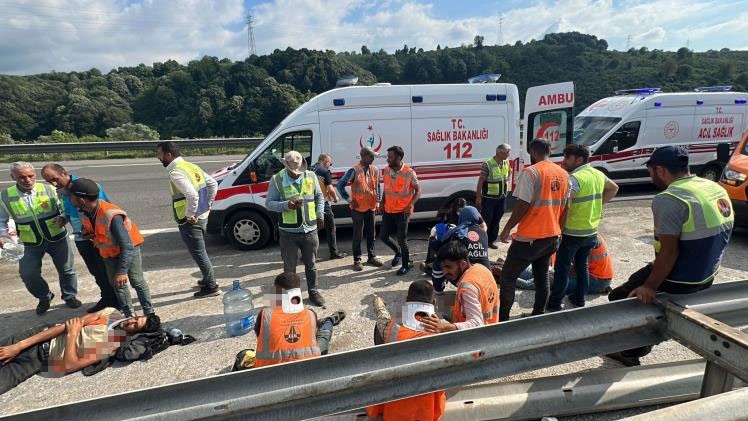 TEM Otoyolu Düzce geçişinde bir otomobilin, Karayolları işçilerini taşıyan kamyonete çarpması neticesinde meydana gelen kazada 15 kişi yaralandı.