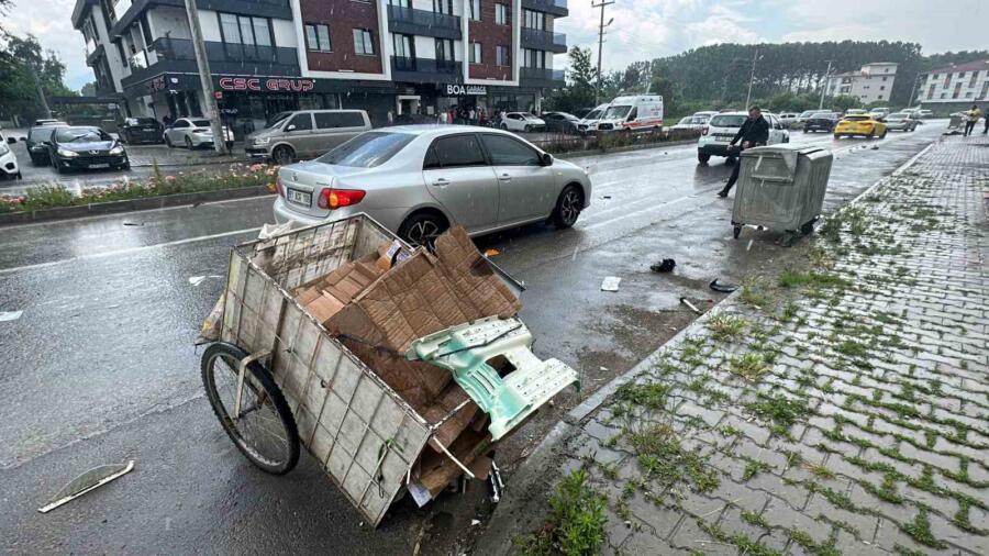 Düzce’de yolun karşısına geçmeye çalışan elektrikli bisiklete otomobil çarptı. Elektrikli bisiklet sürücüsünün ağır yaralandığı kaza, saniye saniye güvenlik kamerasına yansıdı.