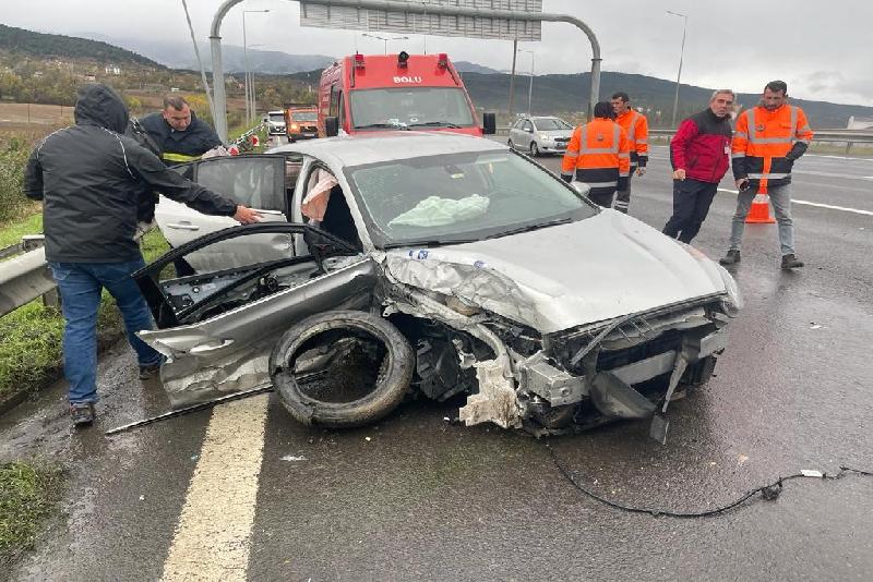 Kaza, Anadolu Otoyolu’nun Bolu geçişinde Batı Gişeleri mevkiinde meydana geldi. Edinilen bilgiye göre, İstanbul istikametinde seyreden Kemal Gökgöz idaresindeki 34 DNK 964 plakalı otomobil, sürücüsünün kontrolünden çıktı. Kontrolden çıkarak yolda savrulan otomobil bariyerlere çarparak durabildi. Meydana gelen kazada sürücü ve yanında yolcu konumunda bulunan Esra E. yaralandı. Kazayı gören diğer sürücüler durumu 112 Acil Çağrı Merkezi’ne bildirdi. İhbar üzerine bölgeye sağlık, polis ve itfaiye ekipleri sevk edildi. Kaza sonrasında araçta sıkışan yaralı Esra E. itfaiye ekiplerinin yardımıyla kurtarıldı. Yaralılar ambulanslara bindirilerek hastaneye sevk edildi.