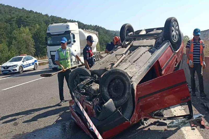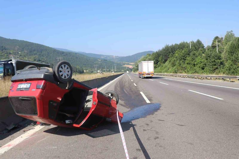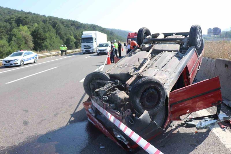 TEM Otoyolu’nun Bolu geçişinde sürücüsünün direksiyon hakimiyetini kaybettiği otomobil bariyerlere çarparak takla attı. Meydana gelen kazada baba ile oğlu yaralandı.
